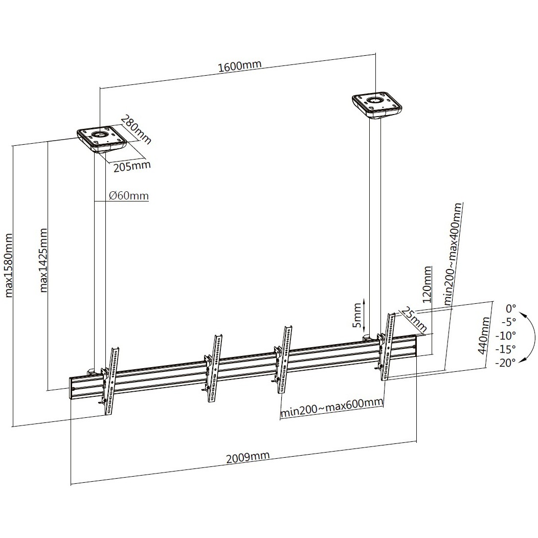 Equip Deckenhalterung 45″-55″/2TFT je 50kg 1Gelenk neig. sw lite Retail (Speditionsversand)