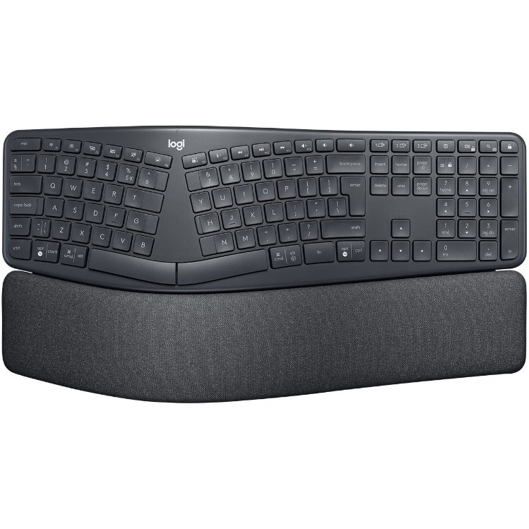 Logitech ERGO K860. Tastatur Formfaktor: Volle Größe (100%). Tastatur-Stil: Geschwungen. Übertragungstechnik: Kabellos, Geräteschnittstelle: Bluetooth, Tastatur-Switch: Halbmechanischer Schlüsselschalter, Tastaturaufbau: QWERTZ, Tastatur – Tastenanzahl: 109. Handgelenkauflage. Empfohlene Nutzung: Büro. Produktfarbe: Graphit