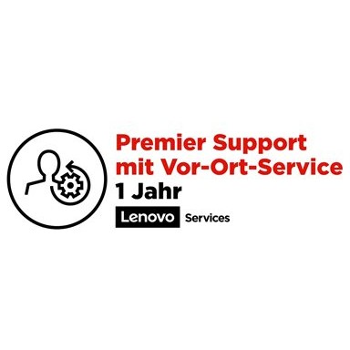 Lenovo 1 Jahr Premier Support mit Vor-Ort-Service. Anzahl Lizenzen: 1 Lizenz(en), Zeitraum: 1 Jahr(e), Servicezeit (Stunden x Tage): 24x7x365, Antwortzeit: 24 h, Typ: Vor Ort