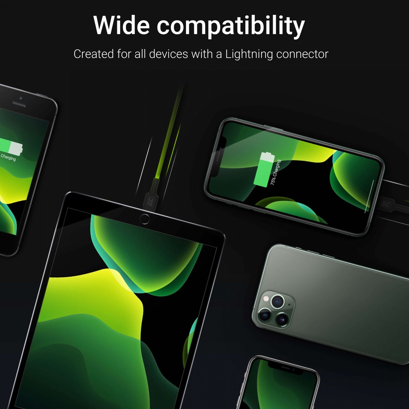 Green Cell USB 3.0 > Lightning (ST-ST) 1,2m Ladekabel LED Schwarz