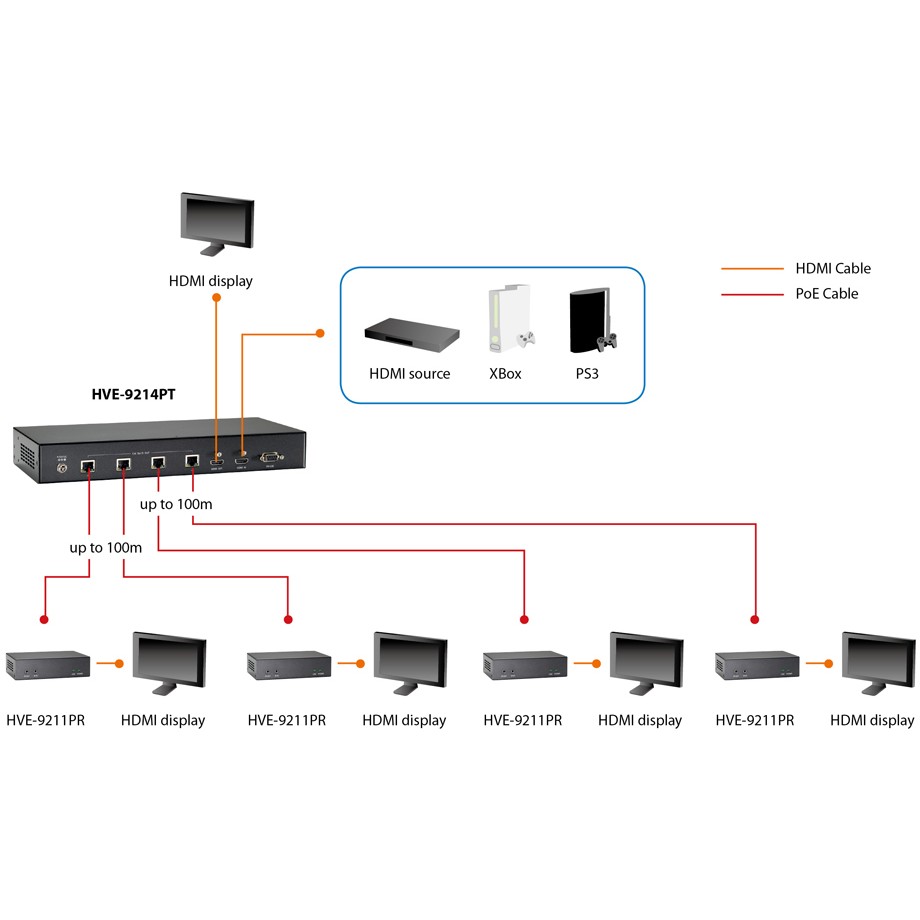 HDMI HVE-9211PR über Cat5 Extender HD PoE 100m