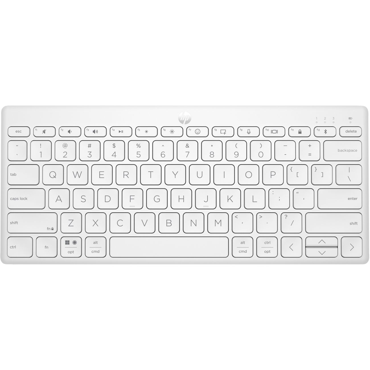 HP 350 Kompakte Bluetooth-Tastatur für mehrere Geräte. Tastatur Formfaktor: Mini, Übertragungstechnik: Kabellos, Geräteschnittstelle: Bluetooth, Tastatur-Switch: Mechanischer Switch, Empfohlene Nutzung: Haus. Produktfarbe: Weiß
