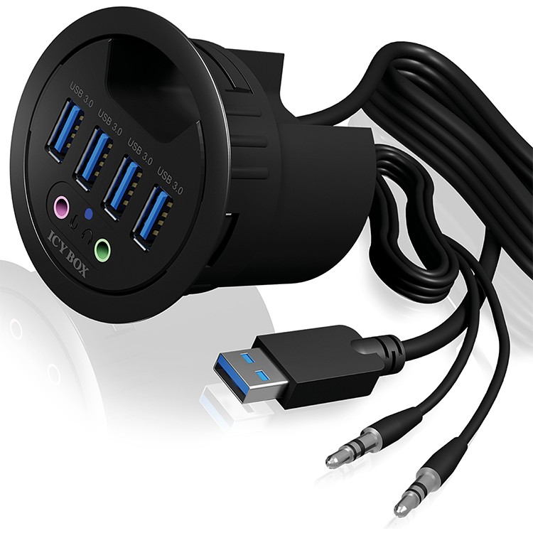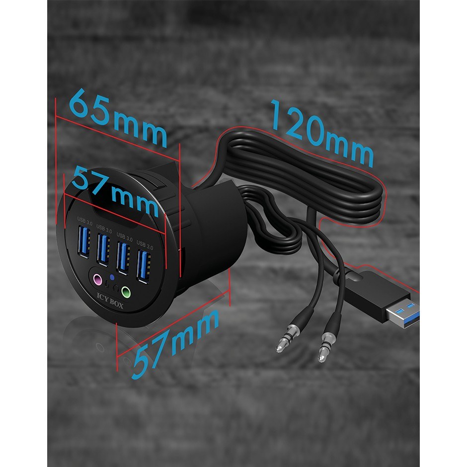 HUB Tisch-Hub 4x USB 3.0 Type-A mit Audio Ein-/Ausgang ICY BOX