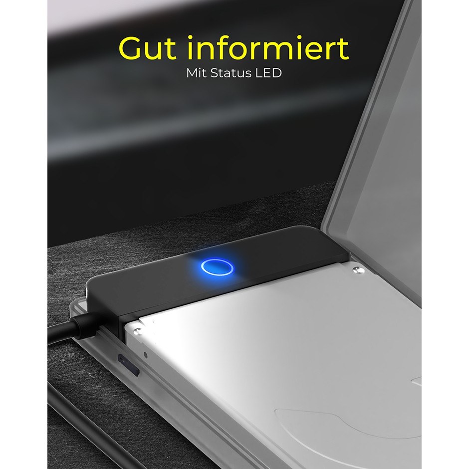 ICY BOX IB-AC603b-U3, USB 3.2 Gen 1 zu 2,5″ SATA Festplatten Adapter Kabel, Zugriff LED. Produkttyp: HDD / SSD-Gehäuse. Anzahl der unterstützten Speicherlaufwerke: 1, Größe des Speicherlaufwerks: 2.5″, Unterstützte Speicherlaufwerk-Schnittstellen: SATA, Serial ATA II, Serial ATA III. Datenübertragungsrate: 5 Gbit/s. Hot-Swap. Produktfarbe: Anthrazit, Schwarz. USB-Stecker: USB Typ-A