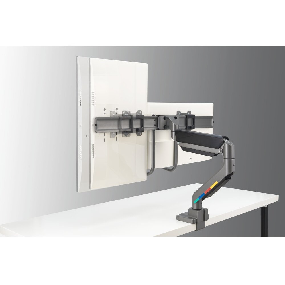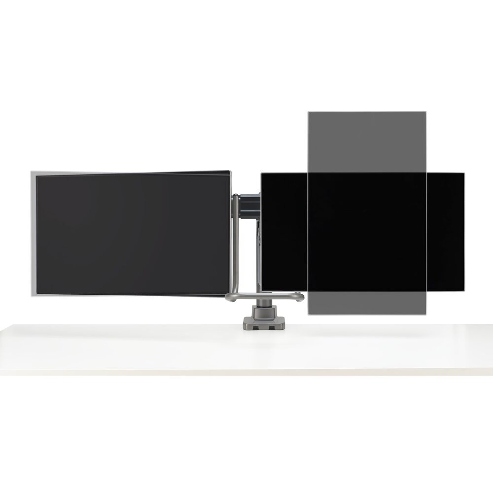 Kensington SmartFit Dual Monitorarm mit Griff. Montage: Klemme/Durchführung, Höchstgewichtskapazität: 18 kg, Maximale Bildschirmgröße: 81,3 cm (32″), Minimale VESA-Halterung: 75 x 75 mm, Maximale VESA-Halterung: 100 x 100 mm. Höhenverstellung, Schwenkwinkelbereich: -10 – 10°, Neigungswinkelbereich: -10 – 10°. Produktfarbe: Grau