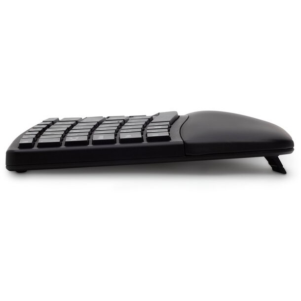 Kensington Pro Fit Ergo-Tastatur, kabellos (schwarz). Tastatur Formfaktor: Volle Größe (100%). Tastatur-Stil: Geschwungen. Übertragungstechnik: Kabellos, Geräteschnittstelle: Bluetooth, Tastaturaufbau: QWERTZ. Handgelenkauflage. Empfohlene Nutzung: Universal. Produktfarbe: Schwarz