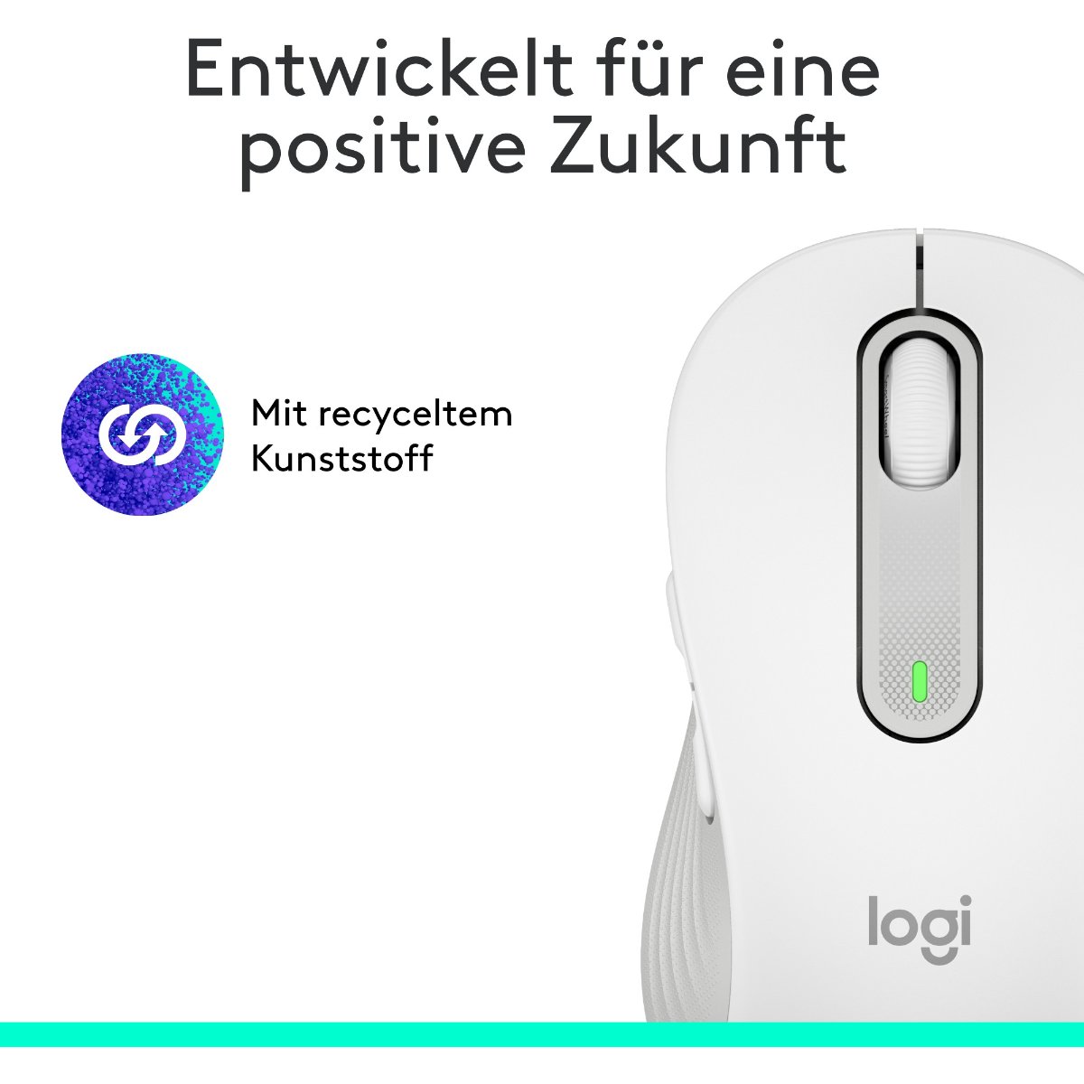 Logitech Signature M650. Formfaktor: rechts. Bewegungerfassungs Technologie: Optisch, Geräteschnittstelle: Bluetooth, Bewegung Auflösung: 4000 DPI, Tastentyp: Gedrückte Tasten, Knopfanzahl: 5, Scroll Typ: Rad. Energiequelle: Batterien. Produktfarbe: Weiß