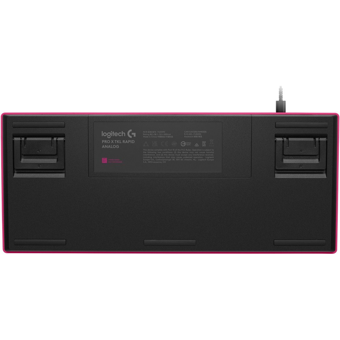 Logitech G PRO X TKL RAPID. Tastatur Formfaktor: Tenkeyless (80 – 87 %). Tastatur-Stil: Gerade. Übertragungstechnik: Kabelgebunden, Geräteschnittstelle: USB, Tastatur-Switch: Magnetic-mechanical key switch, Tastaturaufbau: QWERTZ. Typ der Hintergrundbeleuchtung: LED. Kabellänge: 1,8 m. Empfohlene Nutzung: Gaming. Produktfarbe: Pink