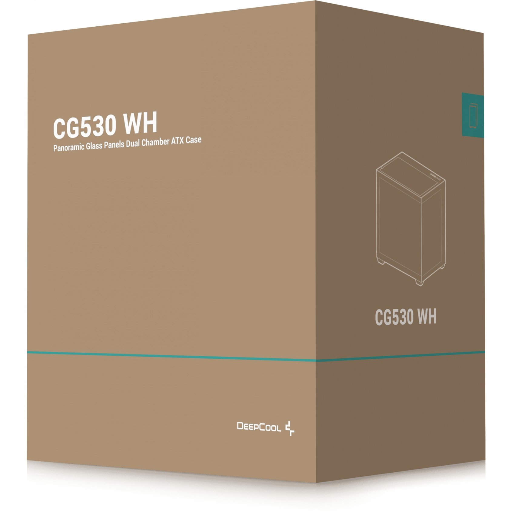DeepCool CG530 WH. Formfaktor: Midi Tower, Typ: PC, Produktfarbe: Weiß. Unterstützte Stromversorgungs-Formfaktoren: ATX, PS2. Durchmesser unterstützte Seitenlüfter: 120,140 mm, Durchmesser unterstützter Rückseitenlüfter: 120 mm, Unterstützte Lüfterdurchmesser (oben): 120,140 mm. Unterstützte Hard-Disk Drive Größen: 2.5,3.5″. Breite: 285 mm, Tiefe: 440 mm, Höhe: 399 mm