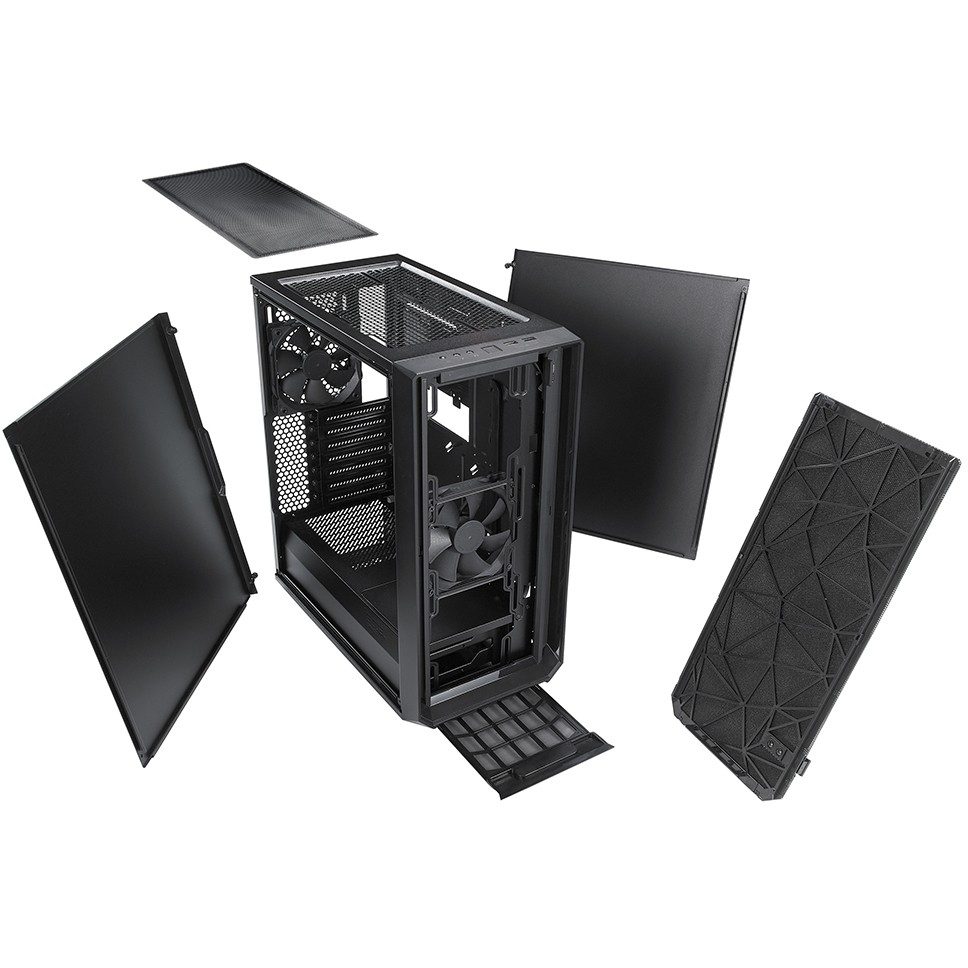 Fractal Design Meshify C. Formfaktor: Midi Tower, Typ: PC, Produktfarbe: Schwarz. Platzierung der Stromversorgung: Boden, Unterstützte Stromversorgungs-Formfaktoren: ATX. Installierte Lüfter (Vorderseite): 1x 120 mm, Durchmesser unterstützte Vorderseitenlüfter: 120,140 mm, Installierte Lüfter hinten: 1x 120 mm. Unterstützte Hard-Disk Drive Größen: 2.5,3.5″. Breite: 212 mm, Tiefe: 395 mm, Höhe: 440 mm