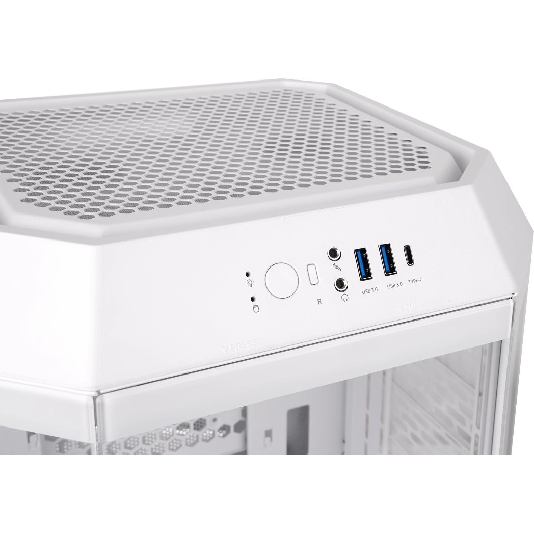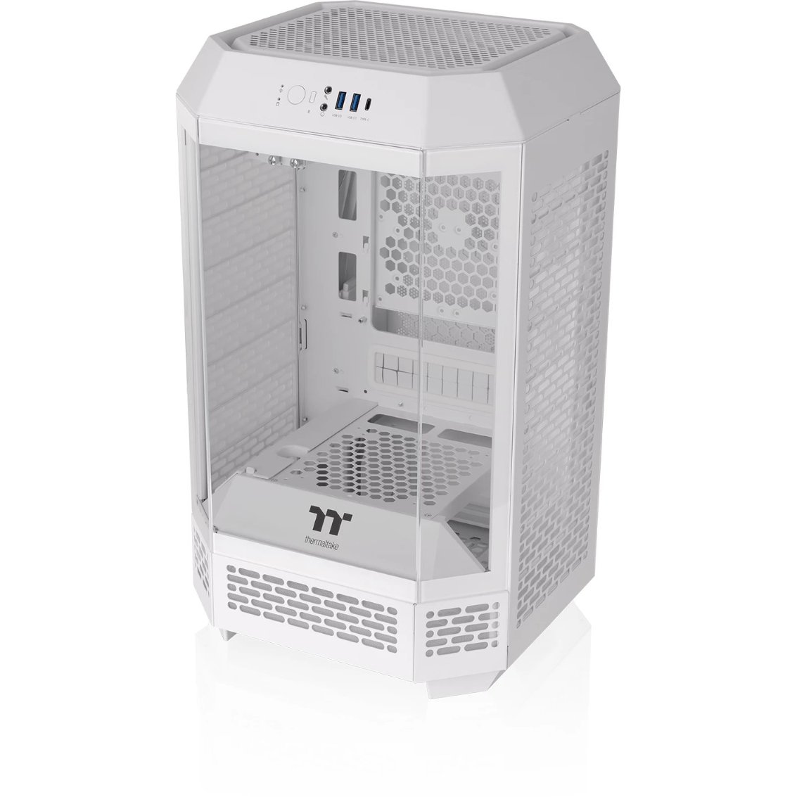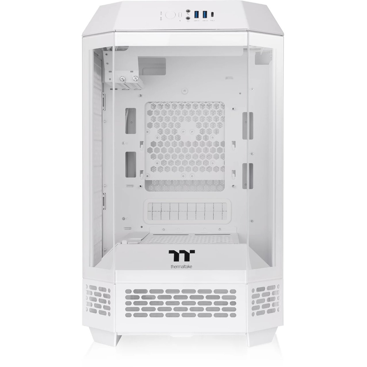 Thermaltake The Tower 250 Snow. Formfaktor: Mini Tower, Typ: PC, Produktfarbe: Weiß. Display-Typ: LCD, Bildschirmdiagonale: 9,91 cm (3.9″), Display-Auflösung: 128 x 480 Pixel. Installierte Lüfter (Vorderseite): 2x 120 mm, Durchmesser unterstützte Vorderseitenlüfter: 120 mm, Durchmesser unterstützte Seitenlüfter: 120,140 mm. Unterstützte Hard-Disk Drive Größen: 2.5,3.5″. Breite: 300 mm, Tiefe: 281 mm, Höhe: 506 mm