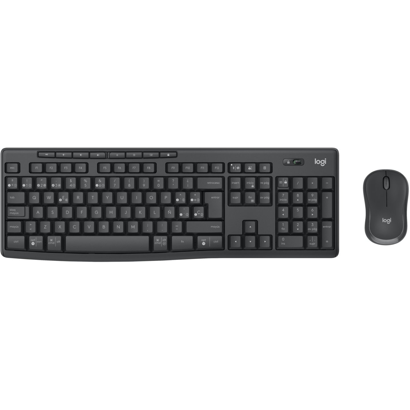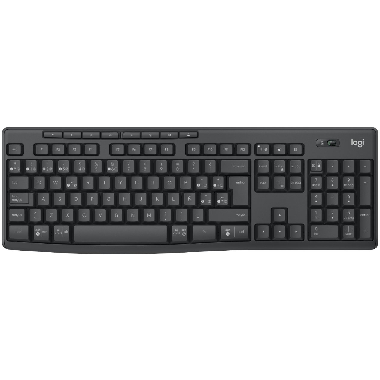 Logitech 920-012071. Tastatur Formfaktor: Volle Größe (100%). Tastatur-Stil: Gerade. Übertragungstechnik: Kabellos, Geräteschnittstelle: Bluetooth, Tastatur-Switch: Membran Key Switch, Tastaturaufbau: QWERTY, Tastatur – Tastenanzahl: 112, Empfohlene Nutzung: Büro. Produktfarbe: Graphit. Maus enthalten