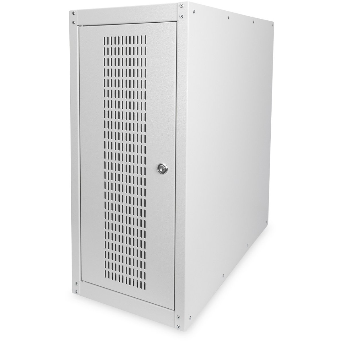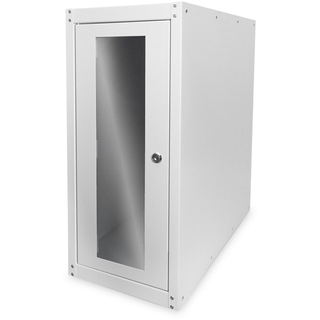 Digitus Computergehäuse mit Glastür, rollbar, abschliessbar mit Lüftungsschlitzen. Typ: Freistehendes Gestell, Sperrschloss, Internationale Schutzart (IP-Code): IP20, Produktfarbe: Grau