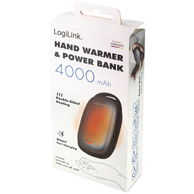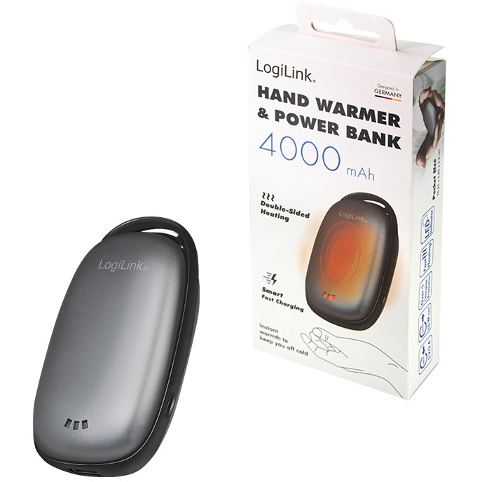 Powerbank 4.000 mAh, 1x USB-A, Handwärmer, metallgrau
