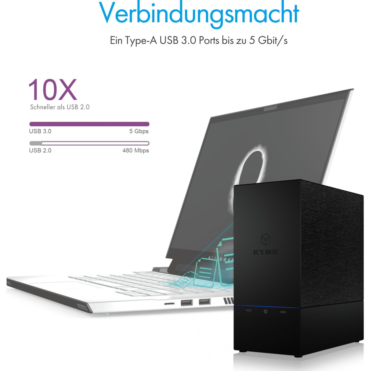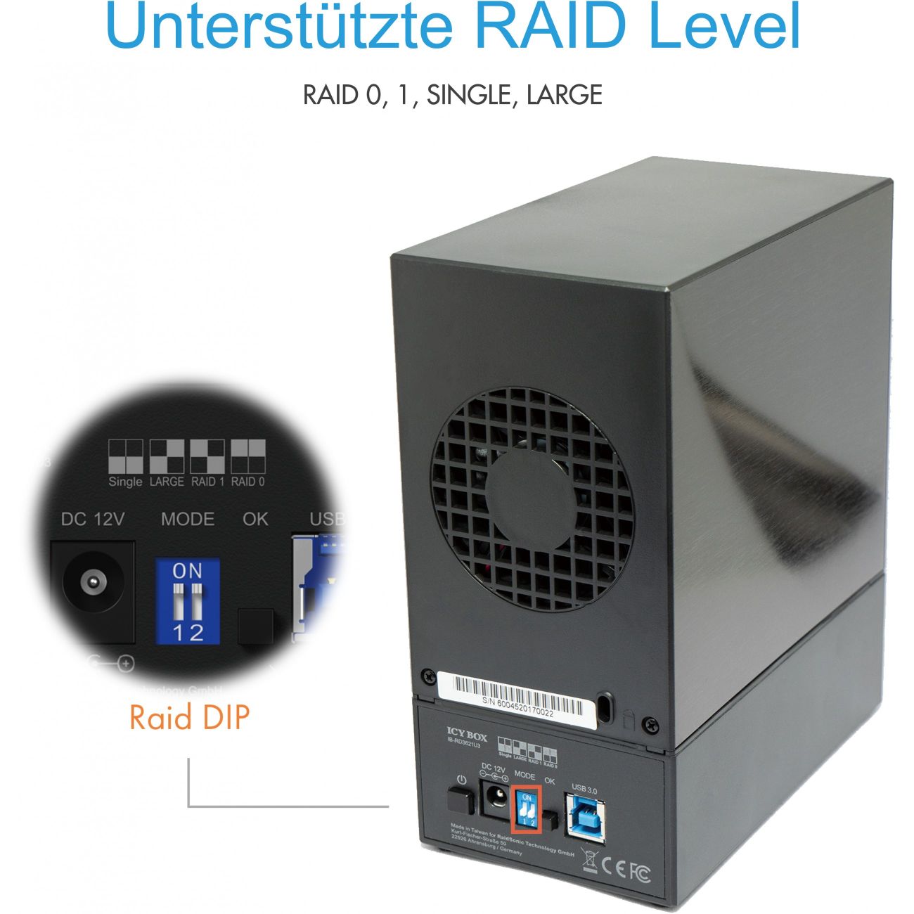 RAID-System. 2x SATA 3.5″ zu 1x USB 3.0 RAID 0/1/LARGE/SINGLE ICY BOX