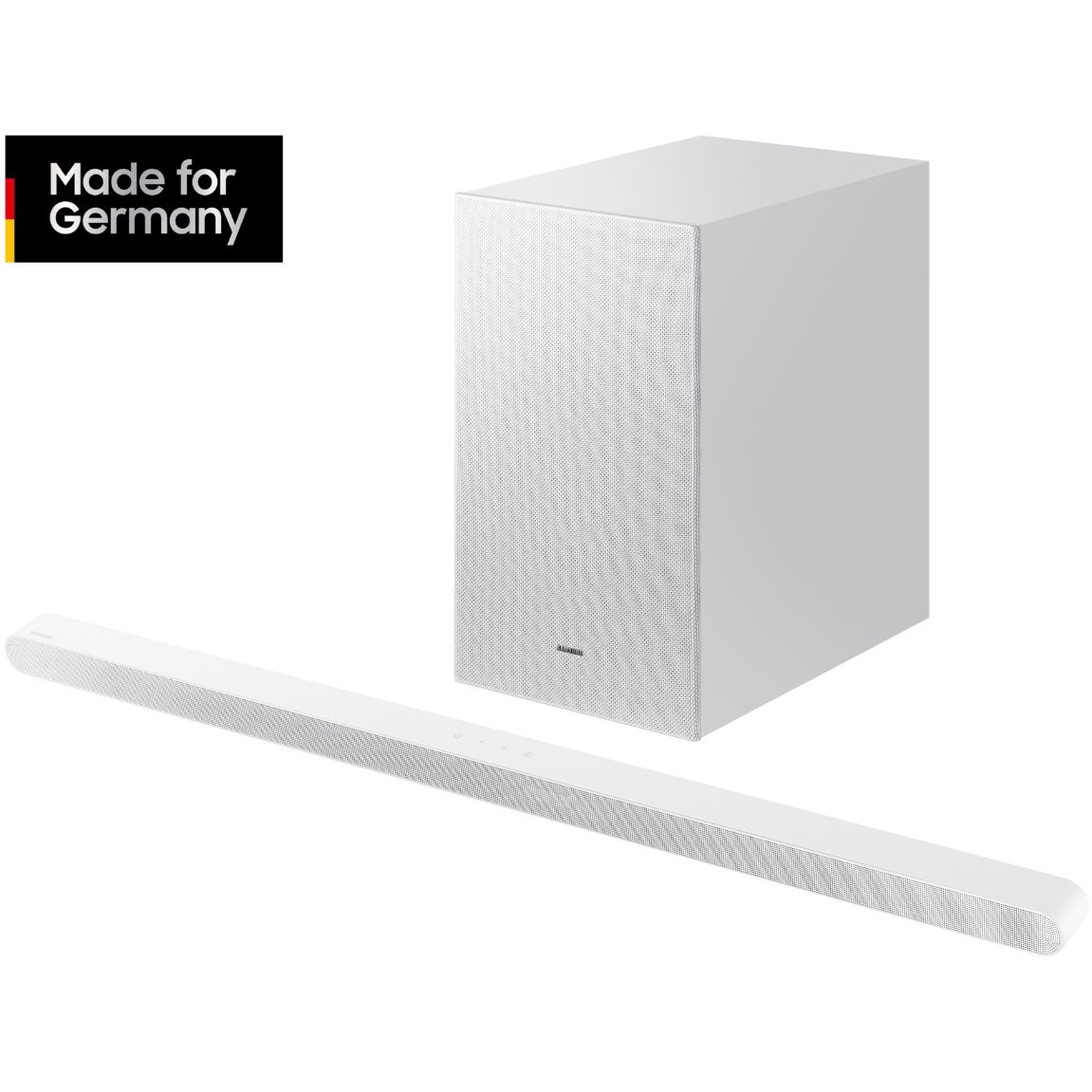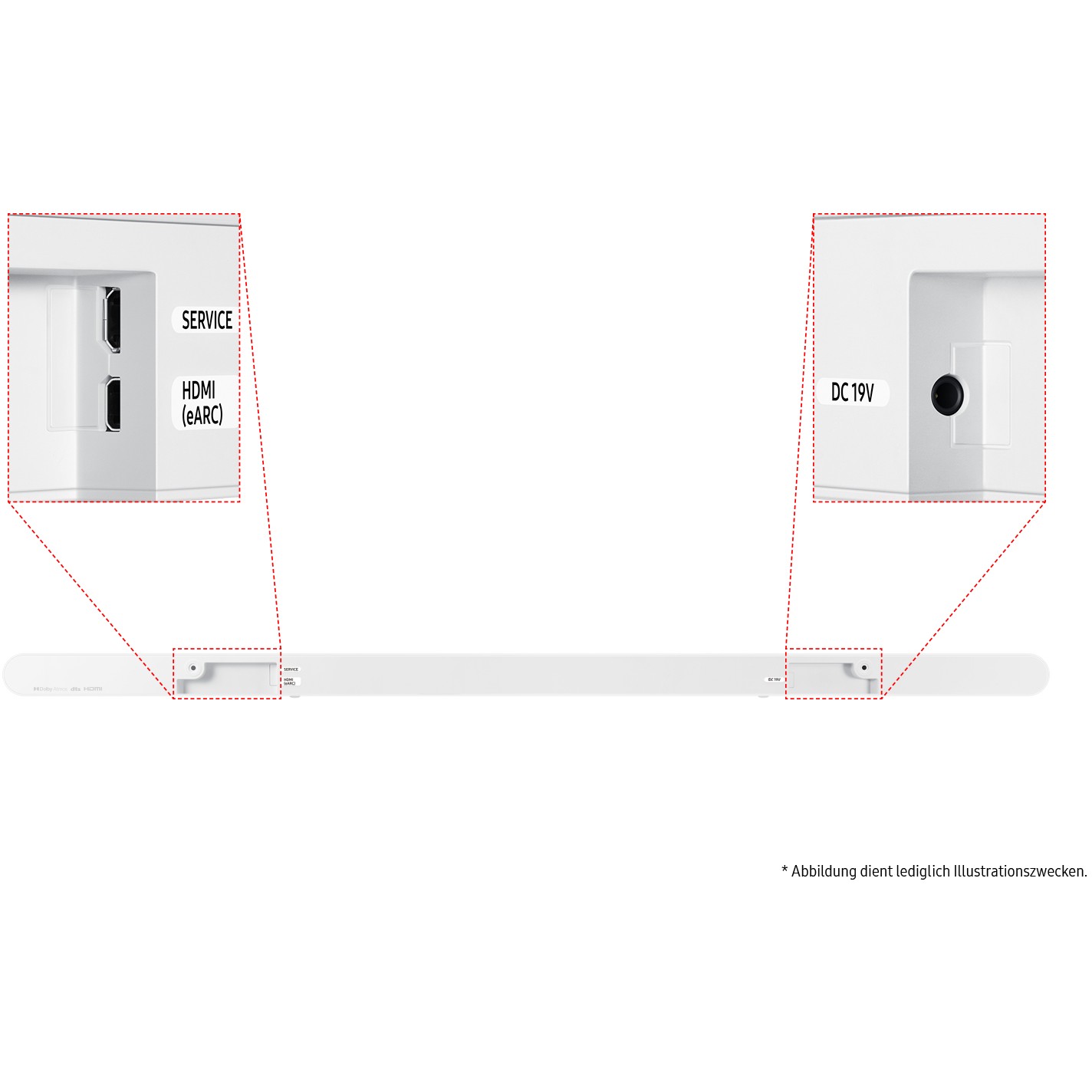 Samsung Ultra Slim Soundbar HW-S711GD 3.1-Kanal & Subwoofer (2024). Audio Kanäle: 3.1 Kanäle, RMS-Leistung: 250 W, Eingebaute Audio-Decoder: Dolby Atmos, Dolby Digital 5.1, Dolby TrueHD. Subwoofer-Konnektivität: Kabellos, Subwoofer Effektivwert Energie: 160 W. Produktfarbe: Weiß, Unterstützte Audioformate: AAC, AIFF, ALAC, FLAC, MP3, OGG, WAV. Übertragungstechnik: Verkabelt & Kabellos. Stromverbrauch Soundbar: 28 W, Stromverbrauch Subwoofer: 26 W, Stromverbrauch (Standardbetrieb): 54 W