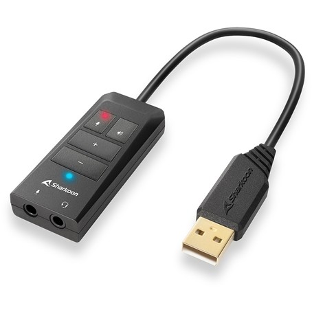 Sharkoon 4044951034215. Audio Kanäle: 7.1 Kanäle, Line-Out Signal-Rausch-Verhältnis (SNR): 93 dB, Audio-A/D-Wandler (ADC): 16-bit/48kHz. Hostschnittstelle: USB, Kopfhörer-Anschluss: 3,5 mm. Steuerung: Tasten, THD, totalklirren: 0,025%, Kabellänge: 0,15 m. Unterstützt Mac-Betriebssysteme: MacOS. Gewicht: 20 g, Breite: 25 mm, Tiefe: 60 mm