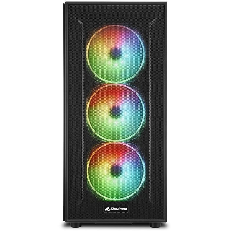 Sharkoon TG6M RGB. Formfaktor: Tower, Typ: PC, Produktfarbe: Schwarz. Platzierung der Stromversorgung: Boden. Installierte Lüfter (Vorderseite): 3x 120 mm, Durchmesser unterstützte Vorderseitenlüfter: 120 mm, Installierte Lüfter hinten: 1x 120 mm. Unterstützte Hard-Disk Drive Größen: 2.5,3.5″. Breite: 215 mm, Tiefe: 452 mm, Höhe: 465 mm