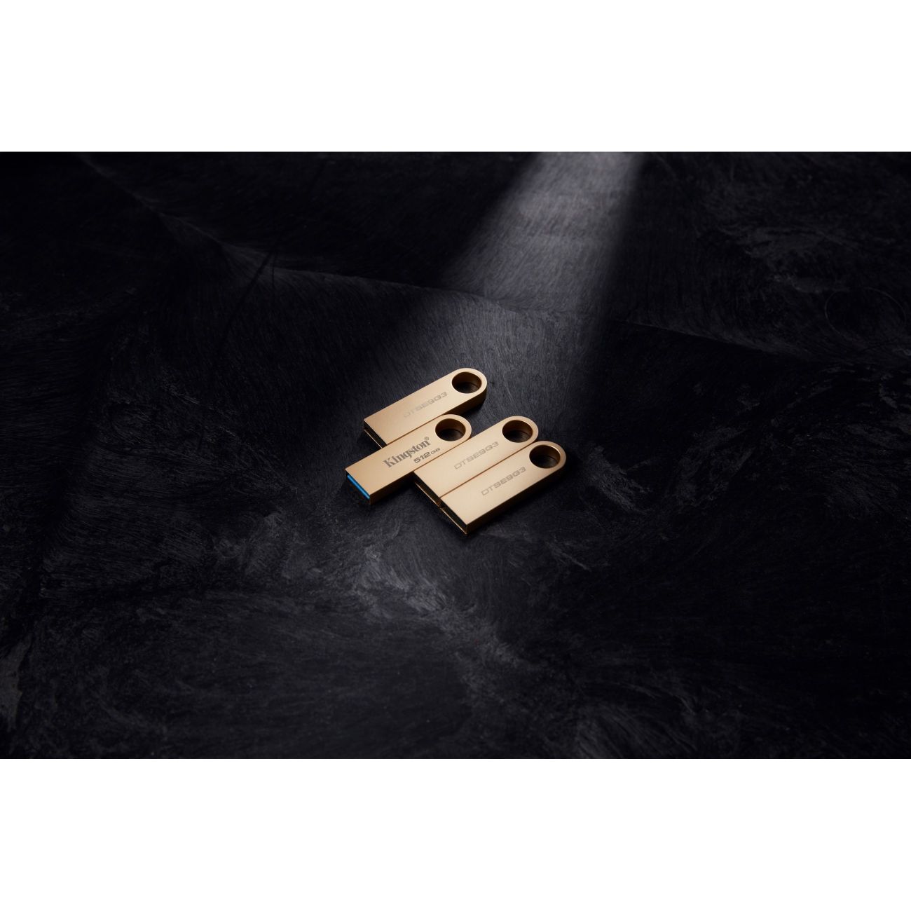 Kingston Technology DataTraveler 64GB 220MB/s Metall-USB-Stick 3.2 Gen 1 SE9 G3. Kapazität: 64 GB, Geräteschnittstelle: USB Typ-A, USB-Version: 3.2 Gen 1 (3.1 Gen 1), Lesegeschwindigkeit: 220 MB/s, Schreibgeschwindigkeit: 100 MB/s. Formfaktor: Ohne Deckel. Gewicht: 15,18 g. Produktfarbe: Gold