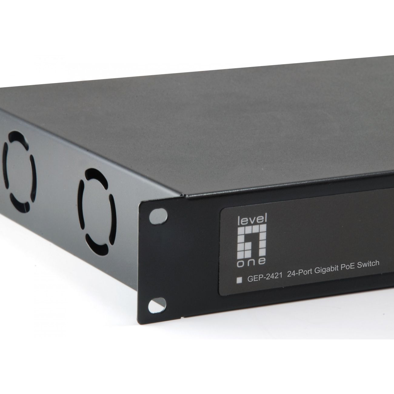 LevelOne GEP-2421W150. Switch-Typ: Unmanaged. Basic Switching RJ-45 Ethernet Ports-Typ: Gigabit Ethernet (10/100/1000), Anzahl der basisschaltenden RJ-45 Ethernet Ports: 24. Vollduplex. MAC-Adressentabelle: 8000 Eintragungen, Routing-/Switching-Kapazität: 48 Gbit/s. Netzstandard: IEEE 802.3, IEEE 802.3ab, IEEE 802.3af, IEEE 802.3at, IEEE 802.3az, IEEE 802.3u, IEEE 802.3x. Power over Ethernet (PoE). Rack-Einbau