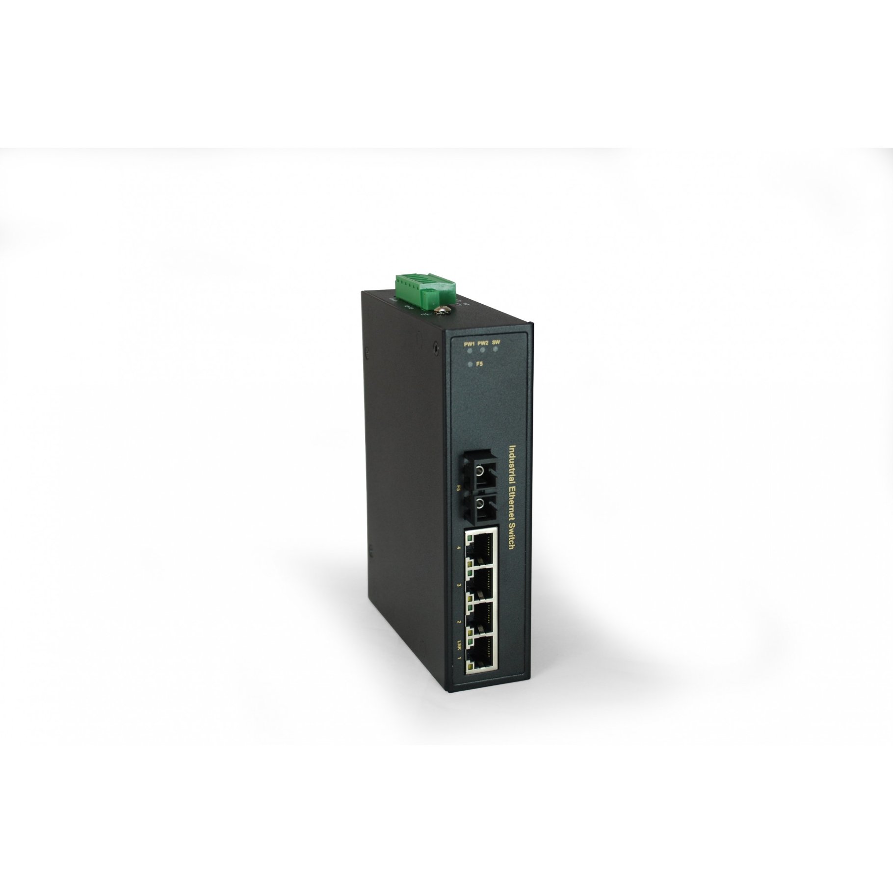 LevelOne 5-Port Fast Ethernet Industrial Switch, DIN-Rail, -40°C to 75°C. Switch-Typ: Unmanaged. Basic Switching RJ-45 Ethernet Ports-Typ: Fast Ethernet (10/100), Anzahl der basisschaltenden RJ-45 Ethernet Ports: 4. Vollduplex. MAC-Adressentabelle: 1000 Eintragungen, Routing-/Switching-Kapazität: 1 Gbit/s. Netzstandard: IEEE 802.3, IEEE 802.3af, IEEE 802.3at, IEEE 802.3u, IEEE 802.3x. Power over Ethernet (PoE). Wandmontage