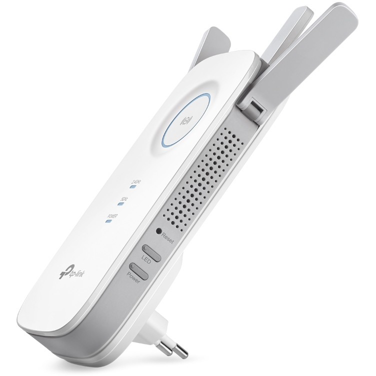 TP-Link AC1750 WLAN-Repeater. Typ: Netzwerksender & -empfänger, Datenübertragungsrate: 1300 Mbit/s, Ethernet LAN Datentransferraten: 10,100,1000 Mbit/s. Antennentyp: Extern, Sendeleistung (CE): 2.4 GHz ≤20dBm, 5 GHz ≤23dBm. Verkabelungstechnologie: 10/100/1000Base-T(X), Netzstandard: IEEE 802.11a, IEEE 802.11ac, IEEE 802.11b, IEEE 802.11g, IEEE 802.11n, IEEE 802.3, IEEE 802.3ab,…, WLAN-Standards: 802.11a, Wi-Fi 5 (802.11ac), 802.11b, 802.11g, Wi-Fi 4 (802.11n). Produktfarbe: Weiß, Menge pro Packung: 1 Stück(e). AC Eingangsspannung: 100 – 240 V, AC Eingangsfrequenz: 50/60 Hz, Stromverbrauch (max.): 9 W