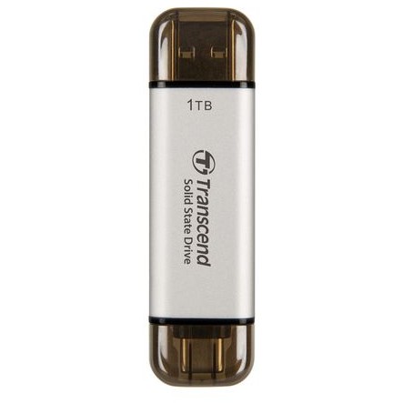Transcend ESD310. SSD Speicherkapazität: 1 TB. USB-Anschlusstyp: USB Type-A / USB Type-C. Lesegeschwindigkeit: 1050 MB/s, Schreibgeschwindigkeit: 950 MB/s. Datenübertragungsrate: 10 Gbit/s. Produktfarbe: Silber