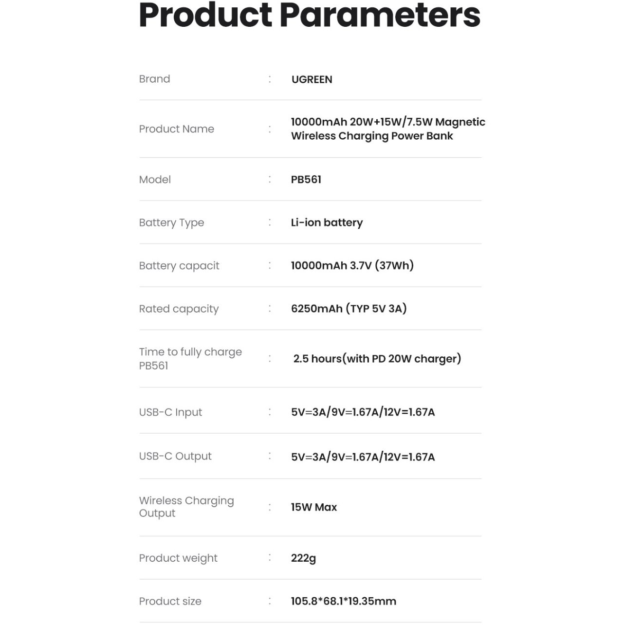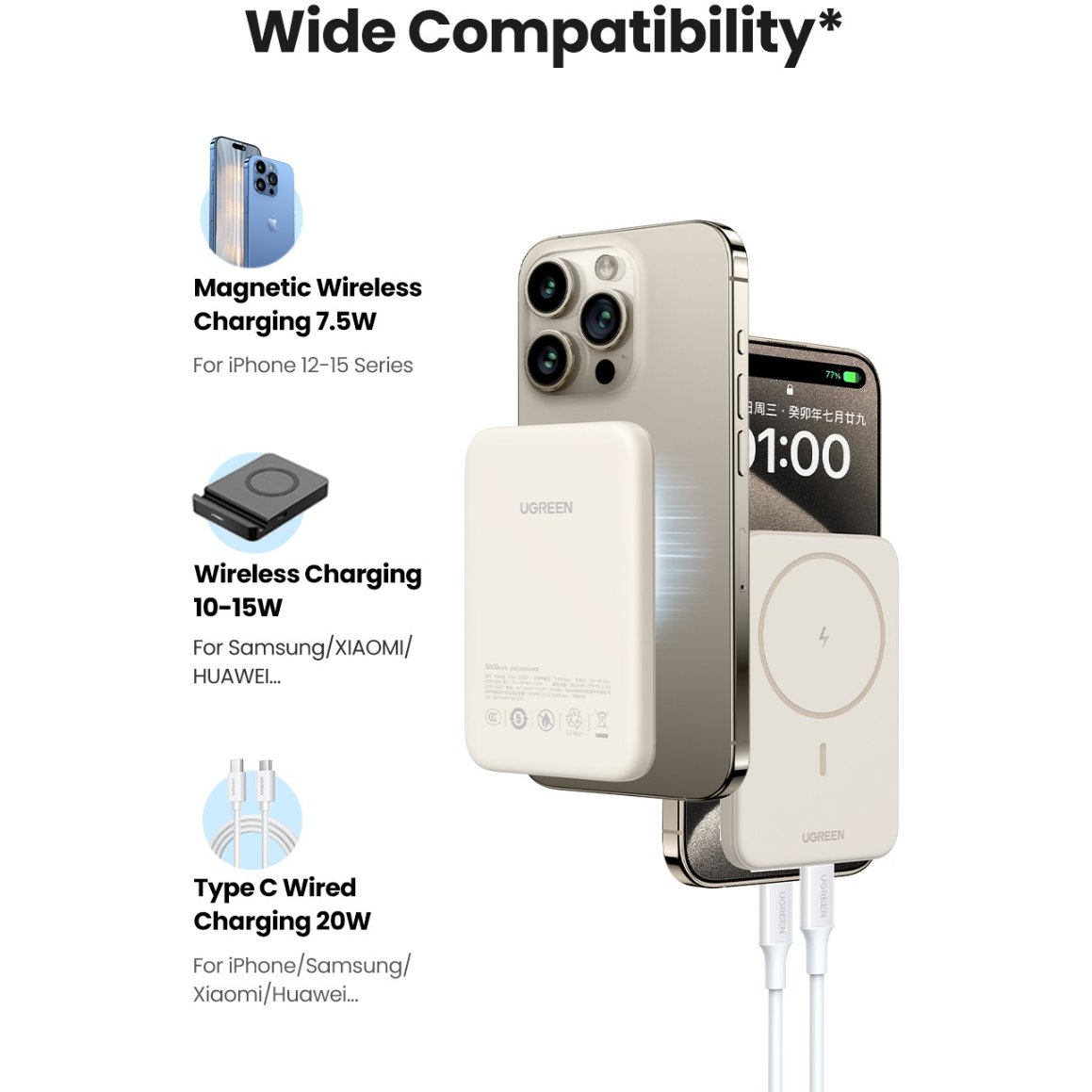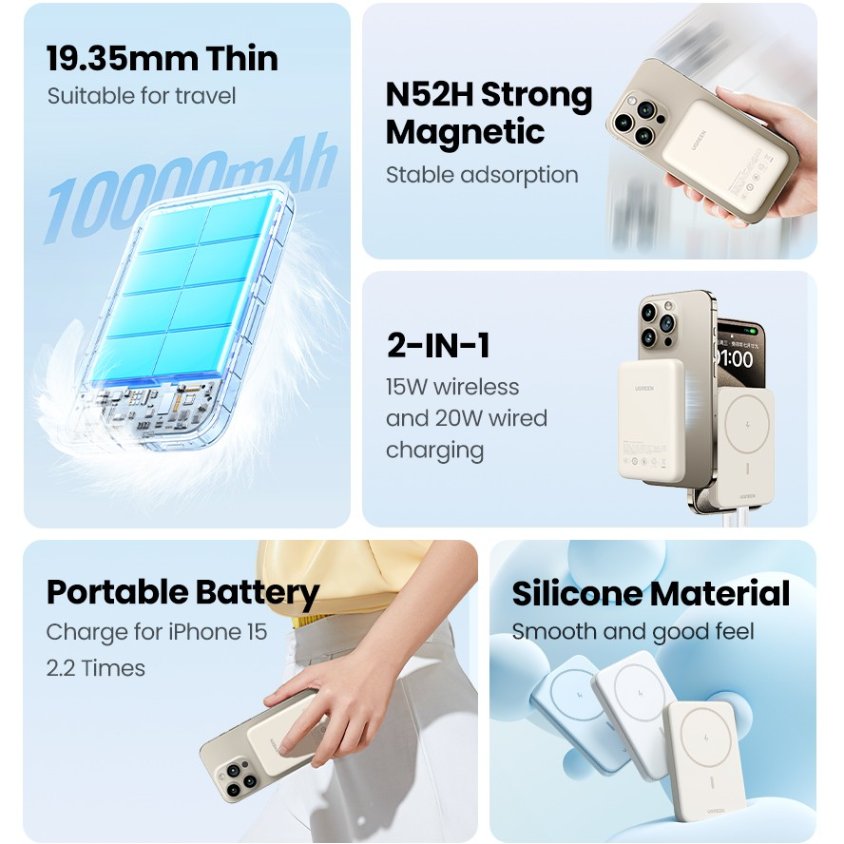 UGREEN 10000mAh Mini Powerbank Wireless 20W with MagSafe white