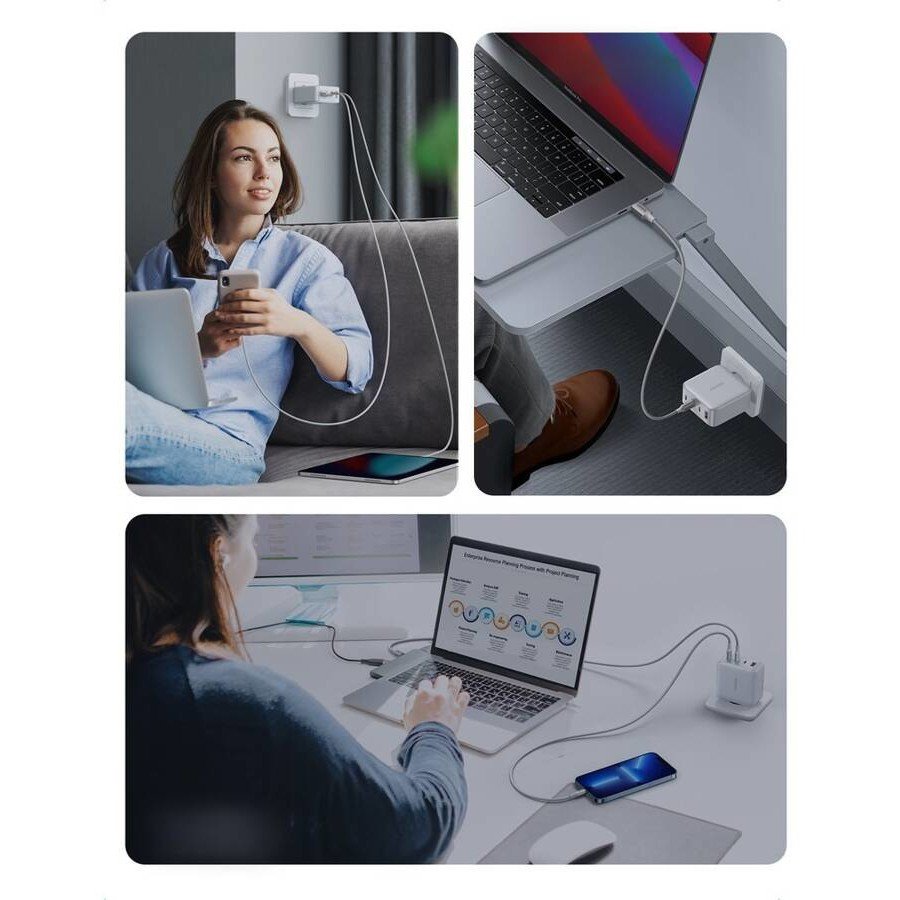 Ugreen 15337. Aufladetyp: Drinnen, Energiequelle: AC, Aufladekompatibilität: Universal. Eingangsspannung: 100 – 240 V, Maximale Ausgangsspannung: 20 V. USB Typ-C Anzahl Anschlüsse: 3, Schnellladung, Energieschutzeigenschaften: Überstrom, Überspannung, Kurzschluß. Produktfarbe: Weiß